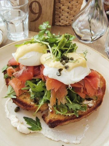 I ordered avocado and feta with poached eggs. The hummus was delicious, the quickly pickled onion was crunchy and just perfectly complimented the rest, the balsamic was thick and just the right flavour, the avocado perfectly ripe and the pistachio crumb and dill finished it off perfectly.
